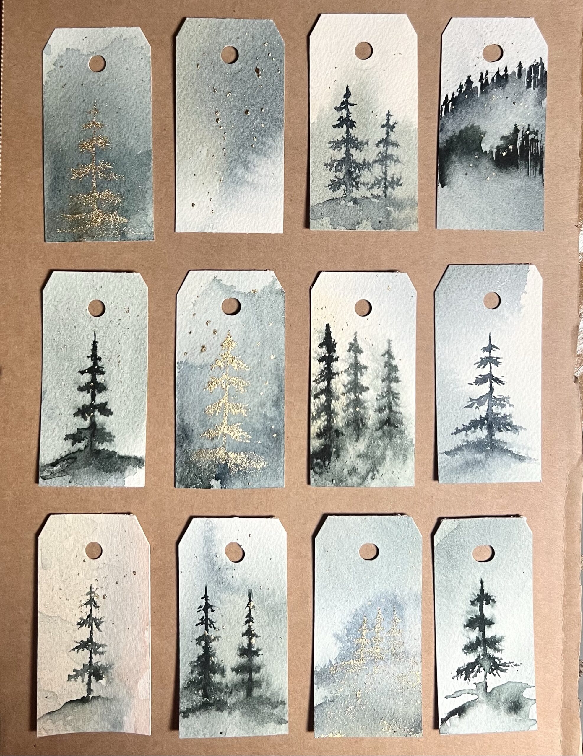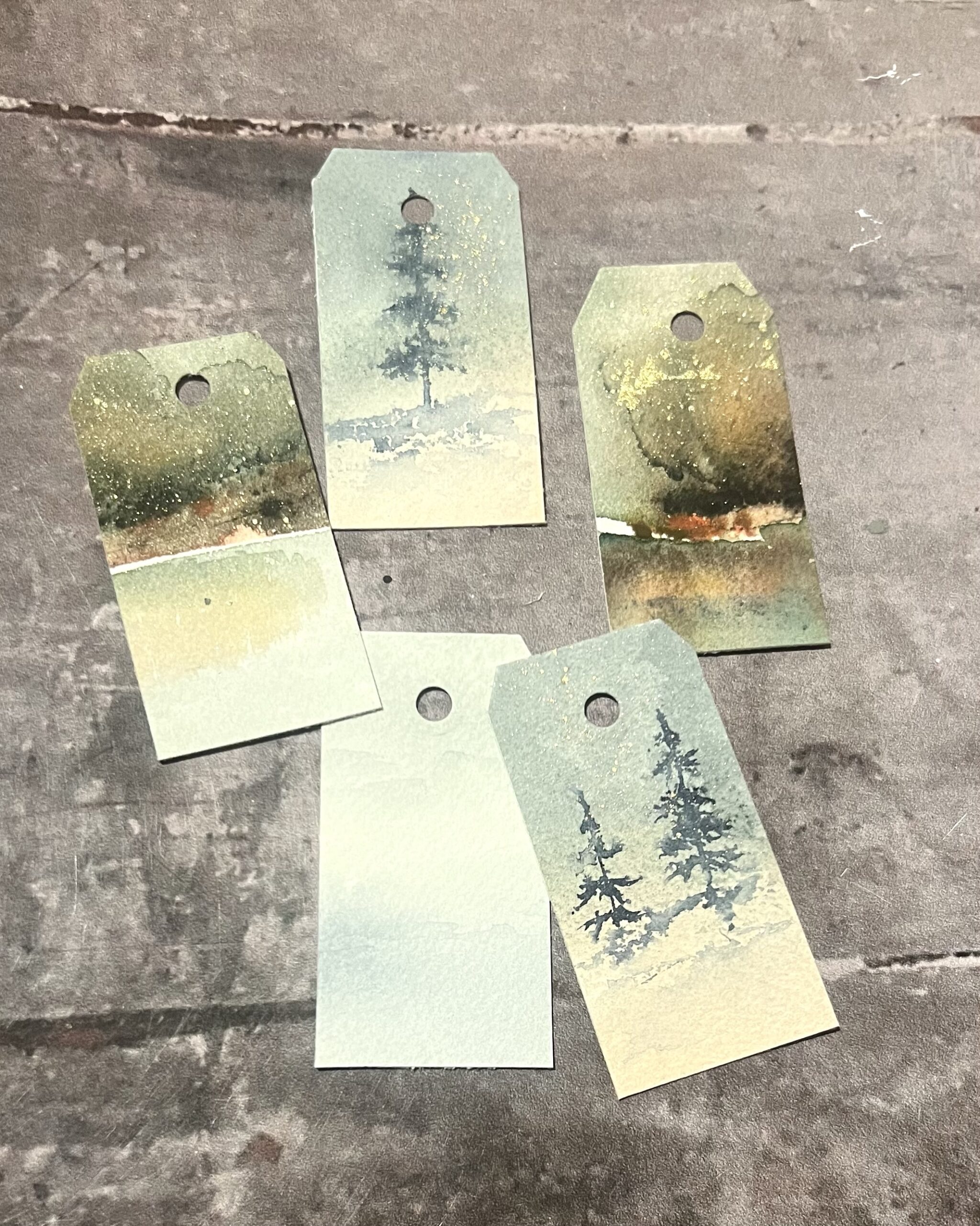 Jeg laver gavemærkerne ud af rester fra mine maleriet, hvorfor hvert enkelt gavemærke er unikt. Billederne viser eksempler på gavemærker, men dem du modtager vil ikke være magen til dem på billedet, da de produceres løbende ud fra hvad jeg har.